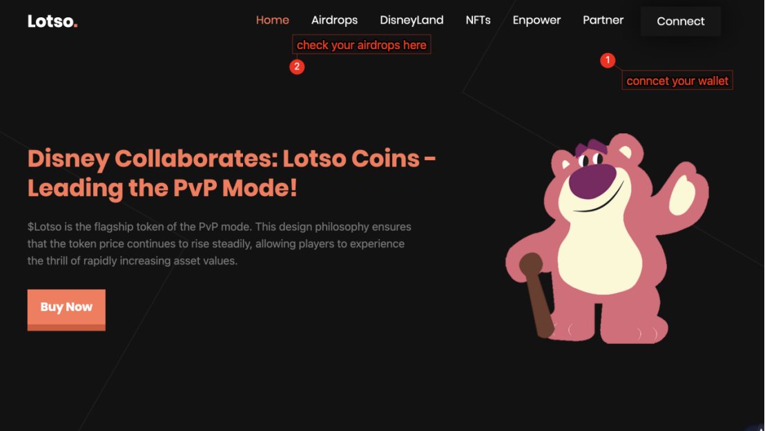 Click our website: Lotso.org, click 'Connect' button and scroll down the webpage to jump to airdrop page.